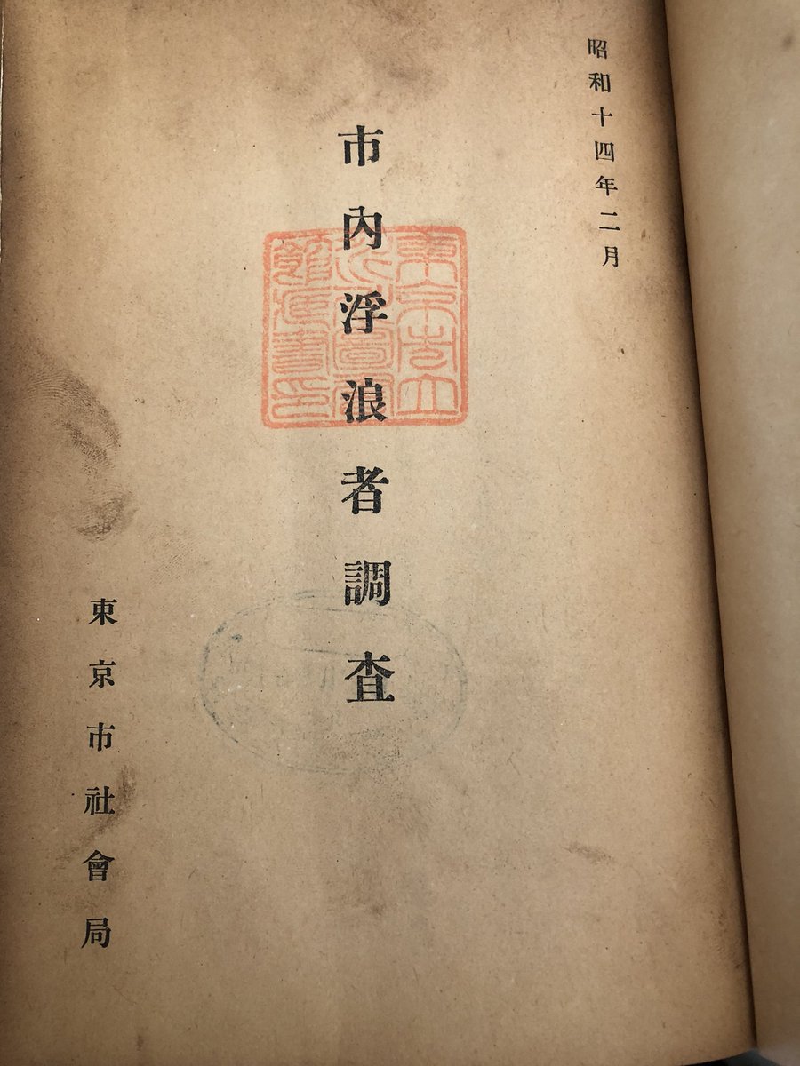 除籍の印がないのが気になるが、旧東京都立日比谷図書館蔵、東京市社会局(1939)、市内浮浪者調査。
