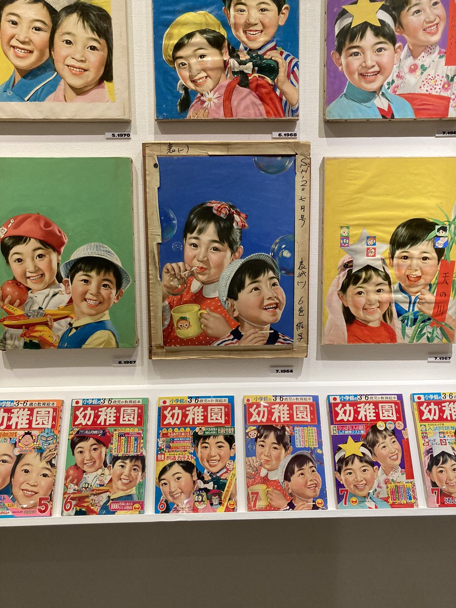日比谷図書文化館「学年誌100年と玉井力三」、とんでもない人数のにっこり顔が圧巻。こればやばい。小学館だけでなく講談社も集英社も学研もみんな幼児誌学年誌の表紙は玉井力三が描いてたって独占状態なのすごい。原画とそれが掲載された雑誌の比較もできて楽しい。 pic.twitter.com/iYyx6BXRTu 2022-09-26 16:17:00