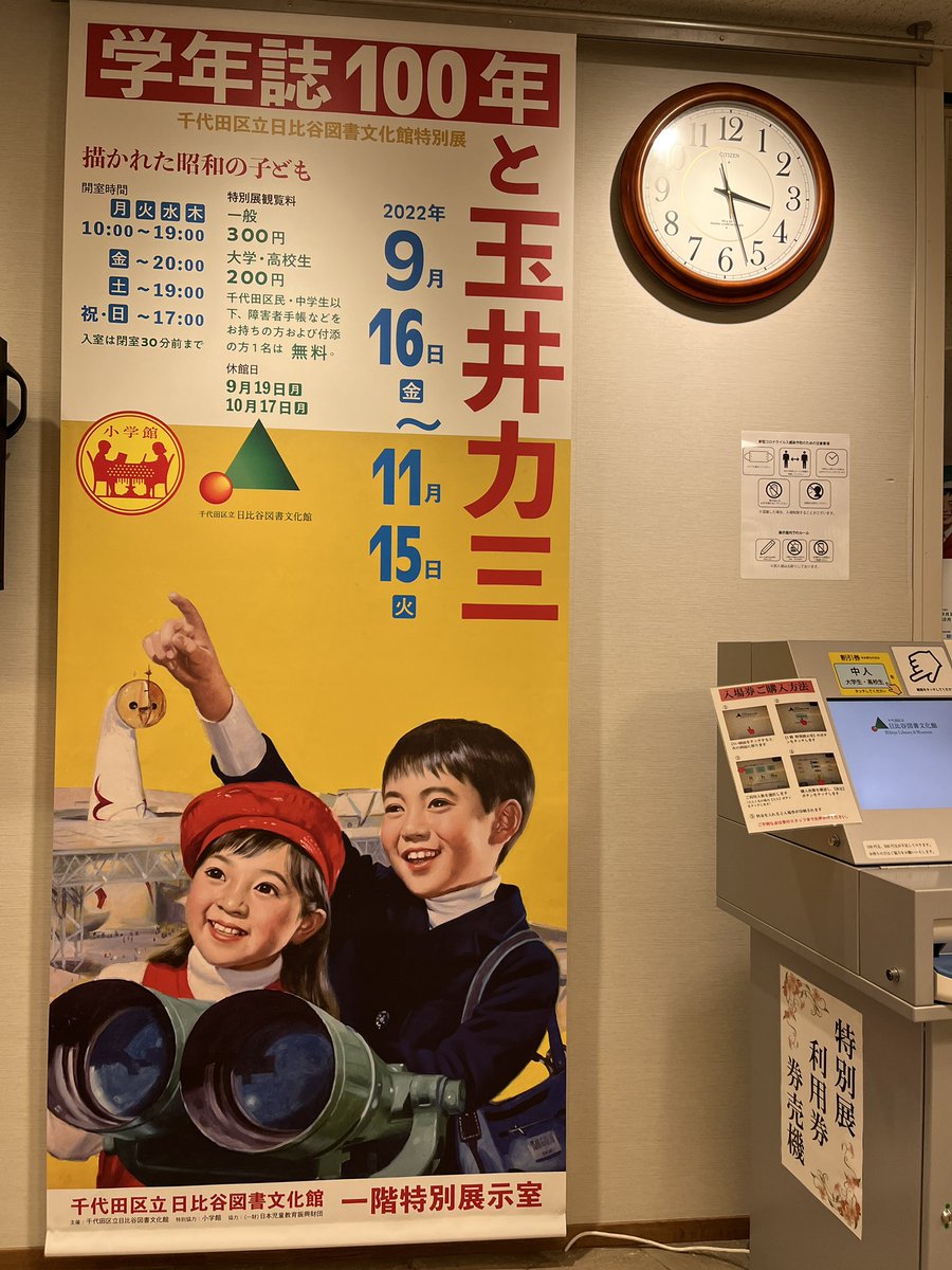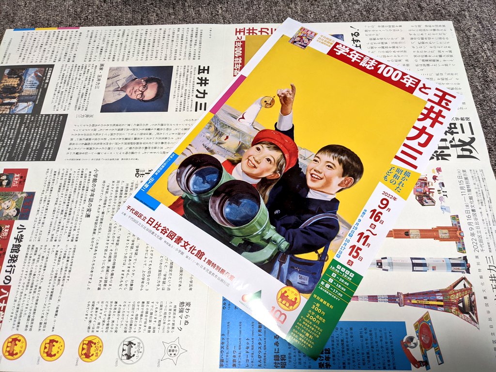 昨日の日比谷野音の #STOPインボイス の集会の前に日比谷図書文化館でやってる「学年誌100年と玉井力三」展に行ってきました。思ってたより見応えあり。写真1~2枚目はたぶん私が入学した年の4月号とその原画。付録の展示もありました。11月15日まで。 pic.twitter.com/JCnYL1Y0KF 2022-10-27 12:01:00