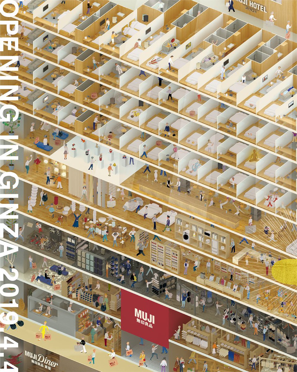 無印良品有楽町の閉店さびしいけど、大引越の洛中洛外図的な巨大イラスト広告がセゾン感あって好き pic.twitter.com/LNoar8nHOy 2018-11-27 11:51:00