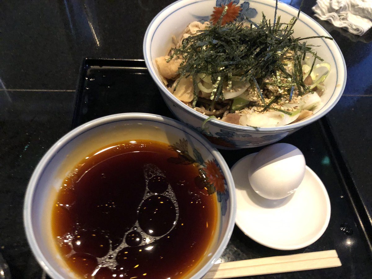 固く太く色の濃いお蕎麦にラー油の効いたつゆが相性良く食べ応えもあり美味しい!一本勝負なの凄いなと思ったけどスタイリッシュな雰囲気が良く回転も超良いし人気があるのも納得😲 pic.twitter.com/rUW82D1joL