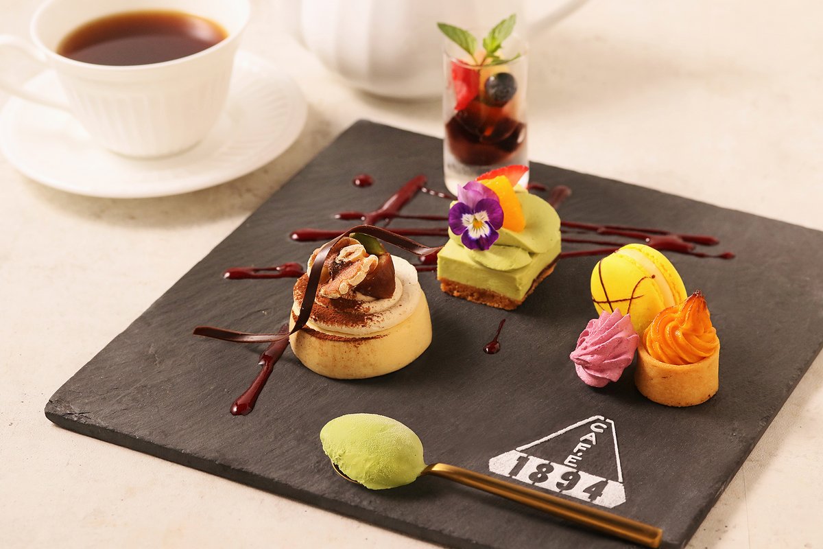和栗のモンブランにフルーツあんみつなど、7種のいろいろなデザートを一度にお楽しみいただける「Café 1894スペシャルデザートプレート」は、紅茶付き税込1,980円です。展覧会会期外のみ。是非ご賞味ください!