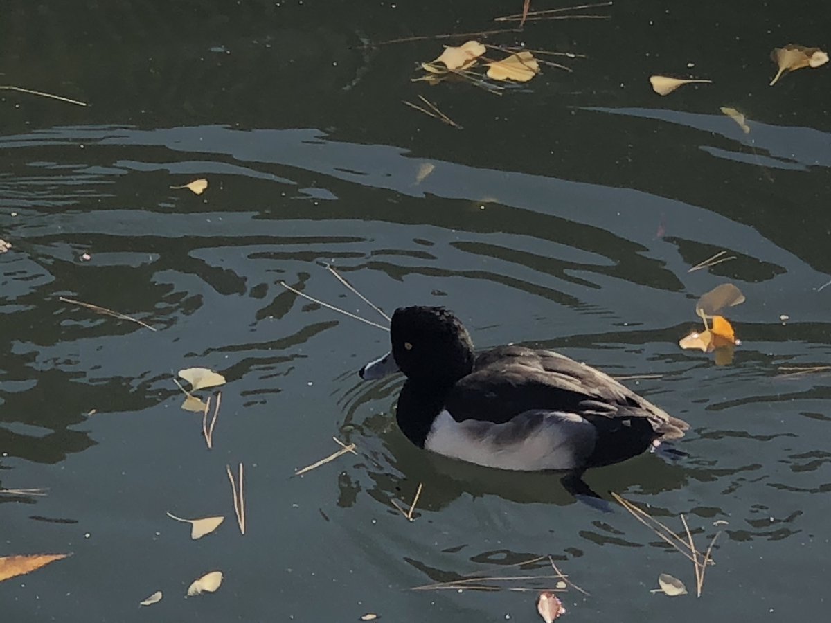 皇居の和田倉濠で泳ぐキンクロハジロ。