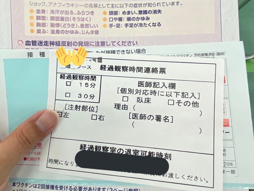 なお問診の結果により経過観察時間が変動、私は30分。経過観察スペースでは副反応の案内と特殊詐欺啓発映像がループ。至れり尽くせり。 2021-06-17 09:57:00