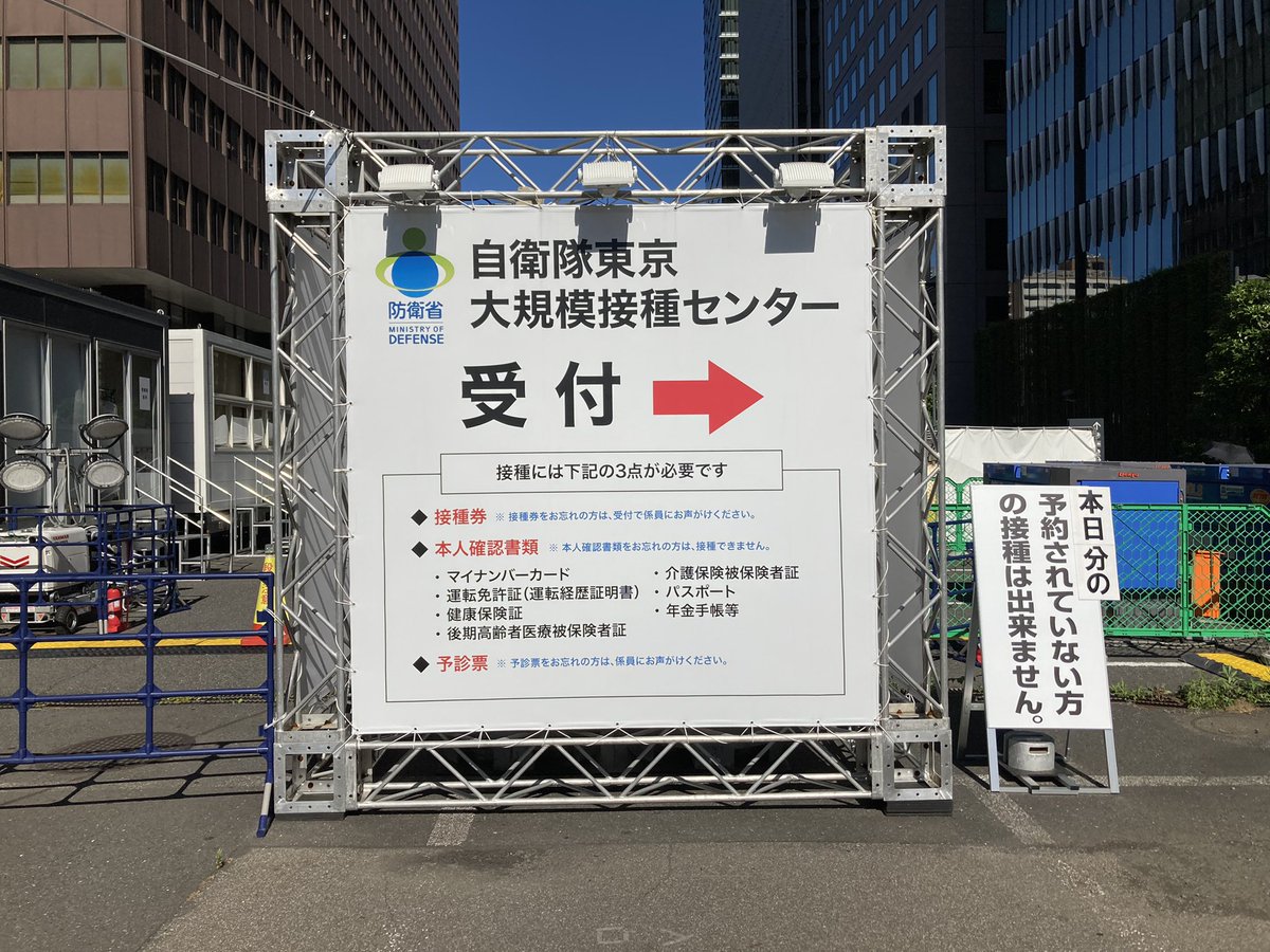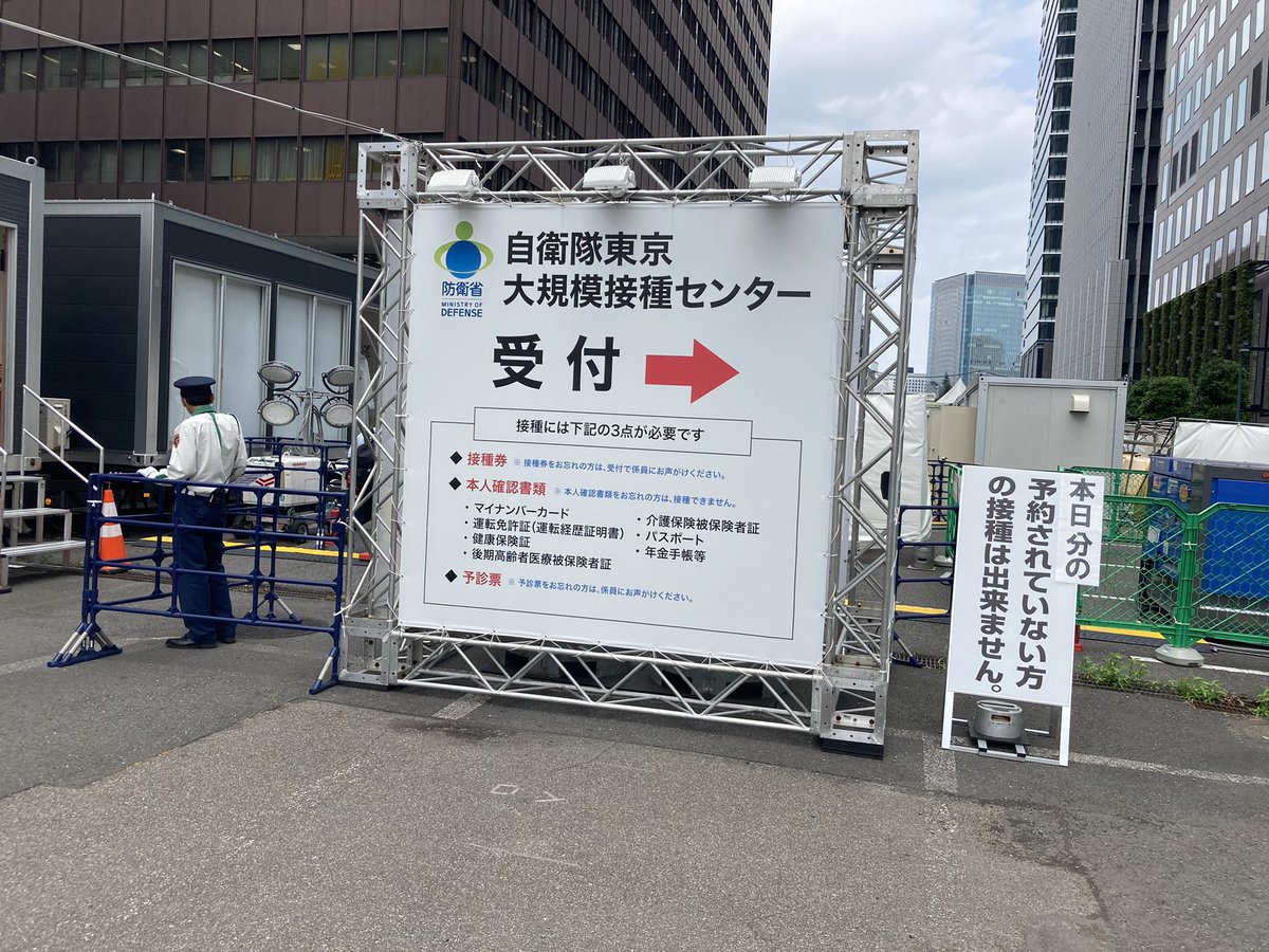 今日は自衛隊 大規模接種センター大手町合同庁舎3号館でコロナワクチン接種に来ています pic.twitter.com/r96qm2pWfV
